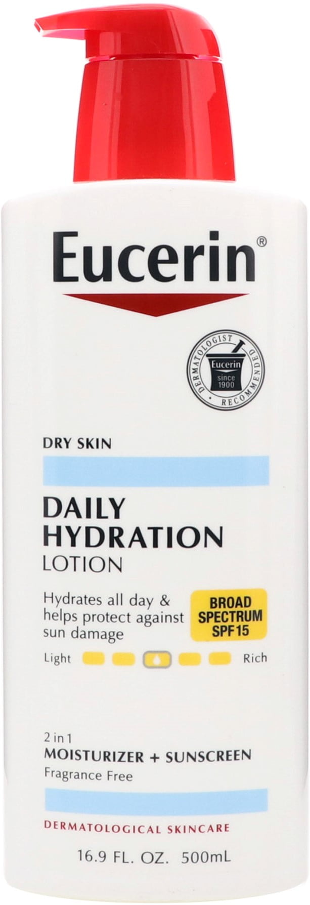 Eucerin Daily Hydration Lotion with SPF 15 - Broad Spectrum Body Lotion for Dry Skin - 16.9 fl. Oz. 500ml
