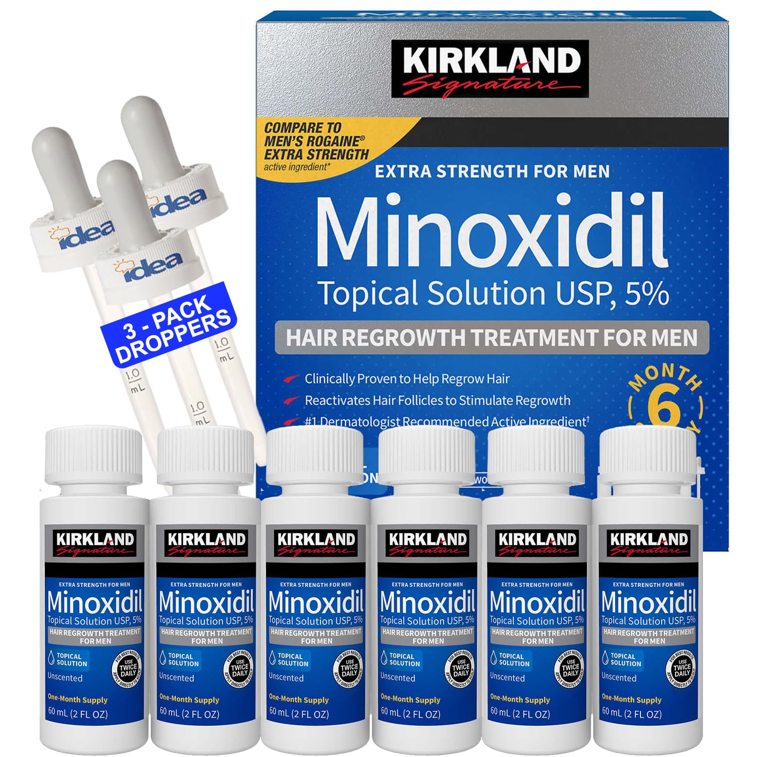 Kirkland Minoxidil 5% Topical Solution Extra Strength Hair Regrowth Treatment for Men, 6x60 ml Bottles